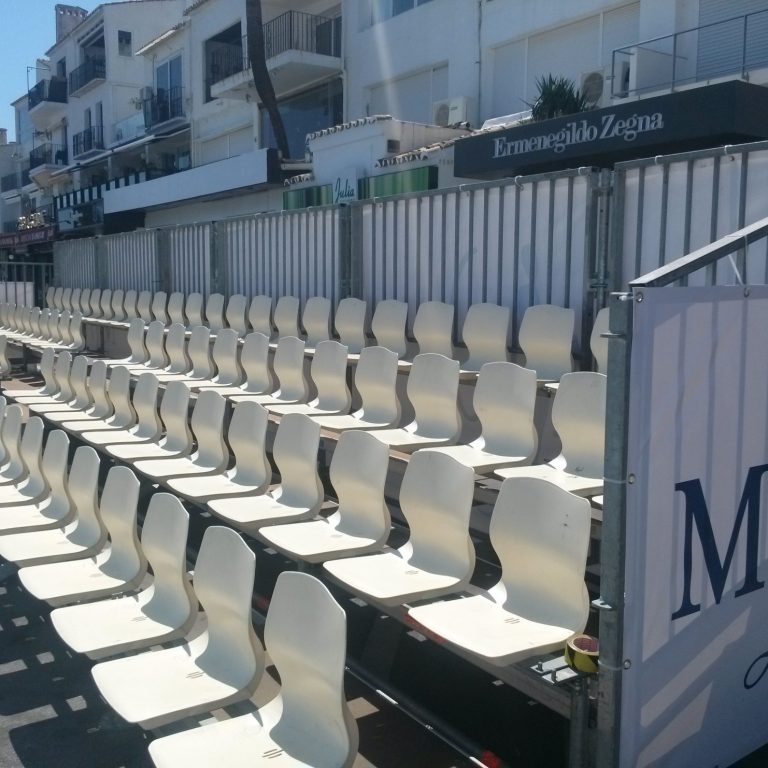 Disponemos de asientos modulares cómodos y resistentes, adaptables a diferentes aforos y configuraciones. Nuestros sistemas de asientos aseguran una correcta distribución del público, comodidad y una imagen ordenada y profesional en cualquier evento.